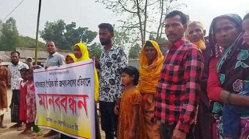 আ.লীগ নেতার অবৈধ দখলে থাকা জমি ফেরত পেতে মানব বন্ধন