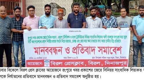 এম, এ কুদ্দুস, বিরল (দিনাজপুর) প্রতিনিধি : রংপুরে সিনিয়র সাংবাদিক লিয়াকত আলী বাদলকে মব করে নির্যাতনের ক্ষোভে ফেটে পড়েছে সারা দেশের সাংবাদিক সমাজ। এই নেক্কার জনক জঘন্য ঘটনার প্রতিবাদে দিনাজপুরের…