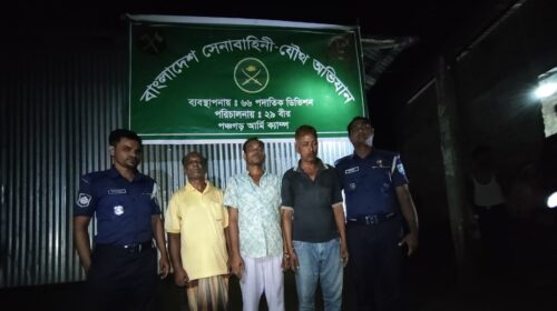 পঞ্চগড় প্রতিনিধি: পঞ্চগড়ের সদর উপজেলায় সেনাবাহিনীর অভিযানে ৯০ পিছ নিষিদ্ধ ট্যাপেন্টাডল ও ৭ পুরিয়া গাঁজা সহ ওয়ার্ড বিএনপির সাধারণ সম্পাদক সহ গ্রেপ্তার ৩ জনকে গ্রেপ্তার করা হয়েছে। মঙ্গলবার দিবাগত রাতে…