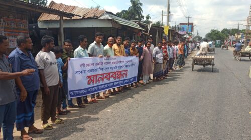 পঞ্চগড় প্রতিনিধি:পঞ্চগড়ের বোদা উপজেলায় ৬ লেন সড়ক নির্মাণে ব্যবসা প্রতিষ্ঠান না ভেঙে বাইপাস সড়ক নির্মাণের দাবিতে ব্যবসায়ীদের মানববন্ধন ও বিক্ষোভ মিছিল অনুষ্ঠিত হয়েছে। বুধবার দুপুরে উপজেলার সাকোয়া বাজার এলাকায় সাকোয়া…