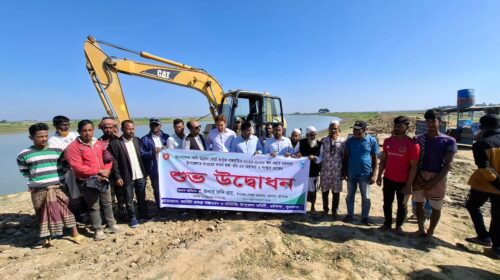 ধর্মপাশায় হাওরের ফসল রক্ষা বাঁধ পূর্ণ নির্মাণ ও মেরামত কাজের শুভ উদ্ভোদন