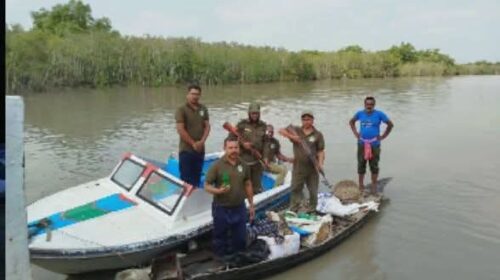 সুন্দরবনে ড্রোনের সহায়তায় অভিযান: বিষ দিয়ে মাছ শিকার পণ্ড, নৌকা ও বিষ জব্দ।