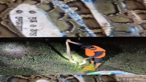 শরণখোলায় মাছের ঘেরে মিলল ১০ফুট লম্বা ২০ কেজি ওজনের অজগর