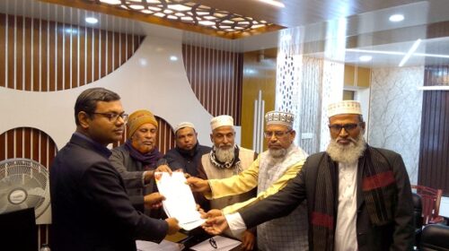 মো. তোফাজ্জল হোসেন, বীরগঞ্জ (দিনাজপুর) প্রতিনিধি : দিনাজপুরের বীরগঞ্জ প্রেসক্লাবে দেশ জাতি ও মানবতার কল্যাণে দোয়া এবং ইফতার মাহফিল অনুষ্ঠিত হয়েছে। বুধবার প্রেসক্লাব প্রাঙ্গণে বীরগঞ্জ প্রেসক্লাবের প্রতিষ্ঠাতা সভাপতি আলহাজ্ব মোঃ আবেদ আলীর সভাপতিত্বে ইফতার মাহফিল অনুষ্ঠানে প্রধান অতিথি হিসেবে অংশ নেন বীরগঞ্জ থানার অফিসার ইনচার্জ মোঃ আব্দুল গফুর। সভামঞ্চে প্রধান অতিথিকে ফুলেল শুভেচ্ছায় সংবর্ধিত করেন প্রেসক্লাব নেতৃবৃন্দ।তার সফর সঙ্গী হিসেবে ছিলেন চৌকস পুলিশ অফিসার জাহাঙ্গীর বাদশা রনি, সিরাজুল আওলাদ সুমন, গোয়েন্দা শাখা পুলিশ অফিসার জাহাঙ্গীর হোসেন, ডিএসবি হাবিবুর রহমানসহ থানার অন্যান্য অফিসারবৃন্দ। প্রেসক্লাবের সাধারণ সম্পাদক শাহিনুর ইসলামের সঞ্চালনায় আমার দেশ পত্রিকার প্রতিনিধি মোশাররফ হোসেন, আজকের পত্রিকার প্রতিনিধি নাজমুল ইসলাম মিলন, সহ-সভাপতি ছকিমুদ্দিন, আরমান আলী, সাবেক সভাপতি মাজেদুর রহমান, নয়া দিগন্ত প্রতিনিধি এসএম হাদিউজ্জামান হাদী, সাংবাদিক ফেরদৌস ওয়াহিদ সবুজ, তোফাজ্জল হোসেন, নাজমুল ইসলাম, কার্তিক ব্যনার্জি, গোকুল রায়ের সার্বিক তত্ত্বাবধানে ও আন্তরিকায় অনুষ্ঠানটি পরিচালিত করা হয়।অনুষ্ঠানে উপজেলা বিএনপির সাধারণ সম্পাদক জাকির হোসেন ধলু, জামায়াতের আমির ক্বারী আজিজুর রহমান, দিনাজপুর-১ আসনে জামায়াত ঘোষিত এমপি প্রার্থী মোঃ মতিউর রহমান, বীর মুক্তিযোদ্ধা মোঃ কবিরুল ইসলাম, বিশিষ্ট ব্যবসায়ী ইটভাটা মালিক সমিতির সভাপতি সাবেক ও বিএনপি নেতা ভিপি রেজওয়ানুল ইসলাম রিজু, শিক্ষক সমিতির সাধারণ সম্পাদক গোলাম মোস্তফা, খানসামা প্রেসক্লাবের সভাপতি মোজাফফর হোসেন, সাধারণ সম্পাদক সিকান্দার আলী কাবুল, ইউনিয়ন ভূমি উপসহকারী কর্মকর্তা মহিবুল ইসলাম বাবু, বিশিষ্ট ব্যবসায়ী হেমচন্দ্র দাসসহ বিভিন্ন দপ্তরের সরকারি কর্মকর্তা কর্মচারী, শিক্ষক, সাংবাদিক, জনপ্রতিনিধি, রাজনীতিবিদ, বৈষম্য বিরোধী আন্দোলনকারী ছাত্রনেতা, বীরমুক্তিযোদ্ধা, ব্যবসায়ী ও রোজাদার সমন্বয়ে গন্যমান্য মুসল্লিগন অংশ নেন। ইফতার পূর্ব রমজানের তাৎপর্য তুলে ধরে আলোচনা করেন কেন্দ্রীয় মসজিদের খতিব মাওলানা মুফতি মোঃ জাহিদুল ইসলাম দিনাজপুরী ও দারুল হুদা কওমী হাফিজিয়া মাদ্রাসার মুহতামিম মাওলানা ওসমান গনি জিহাদী। ইফতারের আগে দেশ জাতি ও মানবতার কল্যাণে দোয়া এবং মোনাজাত পরিচালিত হয়।