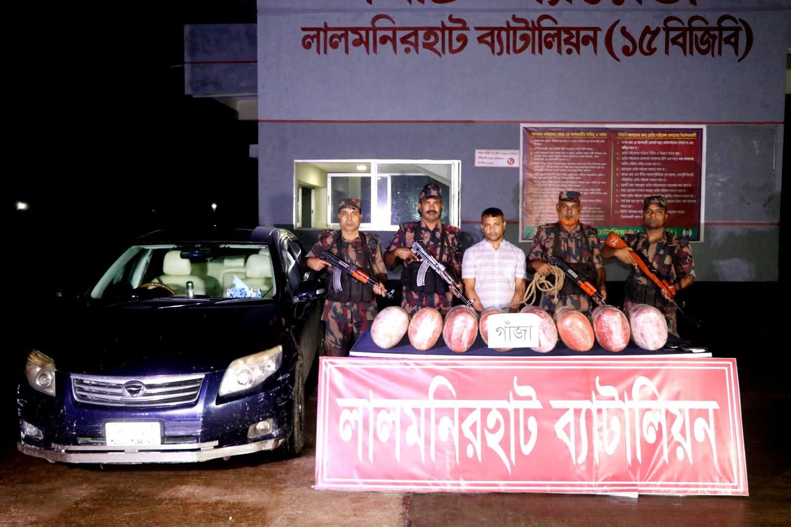 ১৫ বিজিবির প্রেস বিজ্ঞপ্তিতে জানানো হয়, বুধবার রাত সাড়ে ১০টার দিকে বিশ্বস্ত গোয়েন্দা তথ্যের ভিত্তিতে কুলাঘাট স্টিল ব্রিজ চেকপোস্টে অভিযান চালানো হয়। এ সময় একটি সন্দেহভাজন প্রাইভেটকার থামানোর নির্দেশ দিলে চালক পালানোর চেষ্টা করেন। ধাওয়া করে গাড়িটি থামিয়ে তল্লাশি করে ভারতীয় গাঁজা, দুটি মোবাইল, নগদ ১১ হাজার টাকা জব্দ করা হয়। জব্দকৃত মালামালের আনুমানিক বাজারমূল্য ১৬ লাখ ৬২ হাজার টাকা।