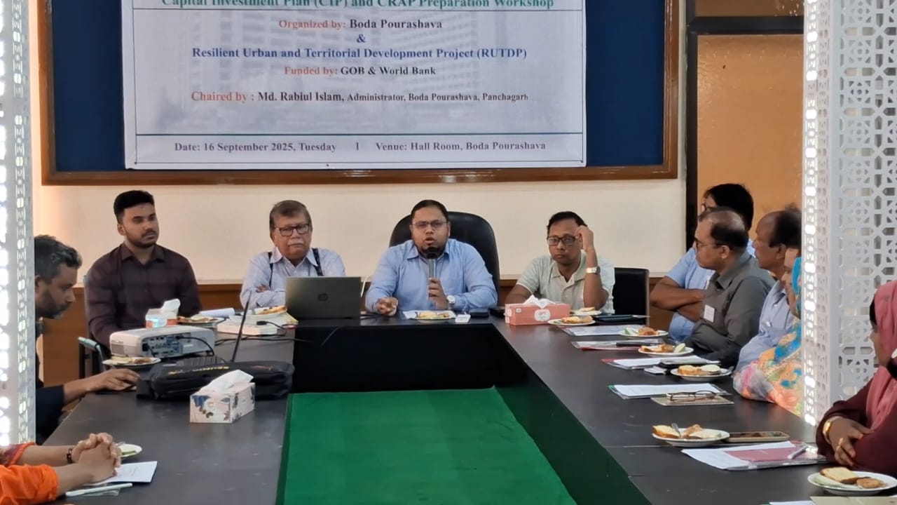বোদা (পঞ্চগড়) প্রতিনিধি : পঞ্চগড়ের বোদায় আজ মঙ্গলবার (১৬ সেপ্টেম্বর) সকাল ১০টায় পৌরসভা সভাকক্ষে বিশ্ব ব্যাংক এর সহায়তায় এবং এলজিইডি কর্তৃক বাস্তবায়নাধীন রিজিলিয়েন্ট আরবান এন্ড টেরিটরিয়াল ডেভেলপমেন্ট প্রজেক্ট এর আওতায় বোদা পৌরসভার ক্লাস্টার উন্নয়ন পরিকল্পনা ক্যাপিটাল ইনভেস্টমেন্ট প্ল্যান এবং ক্লাইমেট রেজিলিয়েন্ট অ্যাকশন প্ল্যান শীর্ষক কর্মশালা অনুষ্ঠিত হয়েছে। উপজেলা নির্বাহী অফিসার ও পৌর প্রশাসক রবিউল ইসলাম এর সভাপতিত্বে এ সময়  বিশেষ অতিথি হিসেবে উপস্থিত ছিলেন এলজিইডির সহকারী প্রকৌশলী মোঃ সাইফুর রহমান হৃদয়। এলজিইডি কর্র্তৃক দিনব্যাপী ক্লাস্টার ডেভেলপমেন্ট প্ল্যান শীর্ষক কর্মশালার উদ্বোধন করেন, পৌর প্রশাসক রবিউল ইসলাম। ওয়ার্কসপের মূল উপস্থাপনা করেন প্রকল্পের কারিগরি বিশেষজ্ঞ মোঃ নুরুল আমিন তালুকদার। এসময় উপস্থিত ছিলেন, টিএলসিসি সদস্যবৃন্দ এবং নগর পরিকল্পনাবিদ মোঃ সাইফুর রহমান, জোবায়দা পারভীন, পরিবেশ বিশেষজ্ঞ মোঃ আল আমিন, সামাজিক ব্যবস্থাপনা বিশেষজ্ঞ মোঃ জাহিদুল ইসলাম, আর্কিটেক্ট আজমিরা আক্তার, জেন্ডার বিশেষজ্ঞ সাজেদা বেগম। কর্মশালায় বক্তারা বলেন, দেশের দক্ষিণ পূর্ব অঞ্চলের পৌরসভা গুলোকে উত্তর-পশ্চিম অঞ্চলের পৌরসভার সাথে সংযুক্ত করার মাধ্যমে অর্থনৈতিক প্রবৃদ্ধি সম্প্রসারণ, গ্রামীণ ও নগর এলাকার মধ্যে অর্থনৈতিক সম্পর্ক জোরদার এবং জলবায়ু সহনশীল নগর ব্যবস্থাপনা গড়ে তোলায় এ প্রকল্পের মূল উদ্দেশ্য। বক্তরা আরো বলেন, প্রথম পর্যায়ে প্রকল্পটি প্রথম ৬ বছরে ৮১টি পৌরসভা এবং ৬টি সিটি কর্পোরেশন বাস্তবায়িত হবে, যা বাংলাদেশের ৩৬টি জেলাকে অর্ন্তভুক্ত করেছে। প্রকল্প বাস্তবায়নের মাধ্যমে প্রায় ২.১ কোটি মানুষ উপকৃত হবেন যার অর্ধেকেই নারী। কর্মশালায় আরো জানানো হয় প্রকল্পের আওতায় রাস্তা ও ফুটপাত, সড়কবাতী উন্নয়ন, ড্রেন নির্মাণ, পাবলিক টয়লেট, বাজার ও বাস টার্মিনাল উন্নয়ন, সুপামার্কেট, ব্রিজ ও কালভার্ট নির্মাণ, পৌরভবন নির্মাণসহ আধুনিক নগর সেবার বিভিন্ন দিক উন্নয়ন করা হবে। বিশ্বব্যাংকের অর্থায়নে বাস্তবায়নাধীন এই প্রকল্প সামাজিক ও পরিবেশগত জলবায়ু সহনশীল নগর পরিসেবা দিক বিবেচনা করে এবং নারীর অংশগ্রহন নিশ্চিত করে পরিচালিত হবে। সভাপতির বক্তব্যে উপজেলা নির্বাহী অফিসার ও পৌর প্রশাসক রবিউল ইসলাম বলেন, এ প্রকল্পের মাধ্যমে বোদা পৌরসভার আধুনিক ও জলবায়ূ সহনশীল নগর ব্যবস্থাপনা গড়ে উঠবে। পৌরসভার রাস্তা, ড্রেন, সড়কবাতি, বাজার, টয়লেটসহ নাগরিক সেবার উন্নয়ন ত্বরান্তিত হবে। স্থানীয় জনগণের অংশগ্রহনে এ পরিকল্পনা বাস্তবায়িত হলে বোদা পৌরসভা একটি আধুনিক পৌরসভা ও সবুজ পৌরসভা হিসেবে গড়ে উঠবে। এসময় 