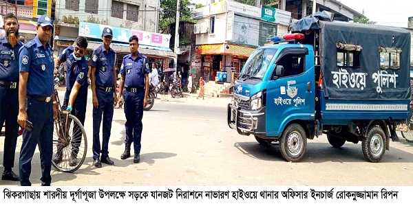 আফজাল হোসেন চাঁদ, ঝিকরগাছা : শৃঙ্খলা, নিরাপত্তা, প্রগতি পুলিশের এই স্লোাগানকে সামনে রেখে যশোরের ঝিকরগাছায় নাভারণ হাইওয়ে থানা পুলিশের শারদীয় দূর্গাপূজা উপলক্ষে হাইওয়ে সড়কে যানজট নিরাশনে নাভারন হাইওয়ে থানার অফিসার ইনচার্জ রোকনুজ্জামান রিপনের ব্যাপক ভূমিকা পালন করেতে দেখা গেছে। এসময় তিনি বলেন, আমরা সরকারী কর্মচারী। আমাদেরকে সরকারী আইন বাস্তবায়নে কাজ করতে হয়। আপনারা যদি সরকারী আইন ফলো করতে পারেন তাহলে আপনার আমার বা আমাদের পরিবারের সকলের জন্য মঙ্গল কর। সব সময় মনে রাখবেন প্রাণ একবার হারালে আর পাওয়া যায় না এই জন্য বাড়িতে না ফেরার চেয়ে দেরিতে বাড়ি ফেরা ভালো। মনের মধ্য থেকে দ্রুতকে পরিহার করে, নিজের জীবনকে মূল্য দেন। তাহলে আপনি সুস্থ থাকবেন, আপনার পরিবারও ভালো থাকবে। অযথা কেউ হাইওয়ে সড়কের উপর এসে যানজট সৃষ্টি করবেন না। রবিবার (২৮ সেপ্টেম্বর) দুপুর সাড়ে ১২টার সময় ঝিকরগাছা পৌর সদরে যশোর বেনাপোল হাইওয়ে রোডে তার এই কার্যক্রম দেখে স্থানীদের মুখে হাঁসি ফুঁটেছে। এসময় তার সফর সঙ্গী ছিলেন, নাভারণ হাইওয়ে থানা পুলিশের এসআই সালাউদ্দীন, এএসআই ইকবাল, কনস্টেবল তানভির, রাসেল, ইব্রাহীম, শহিদুল সহ আরও অনেকে।