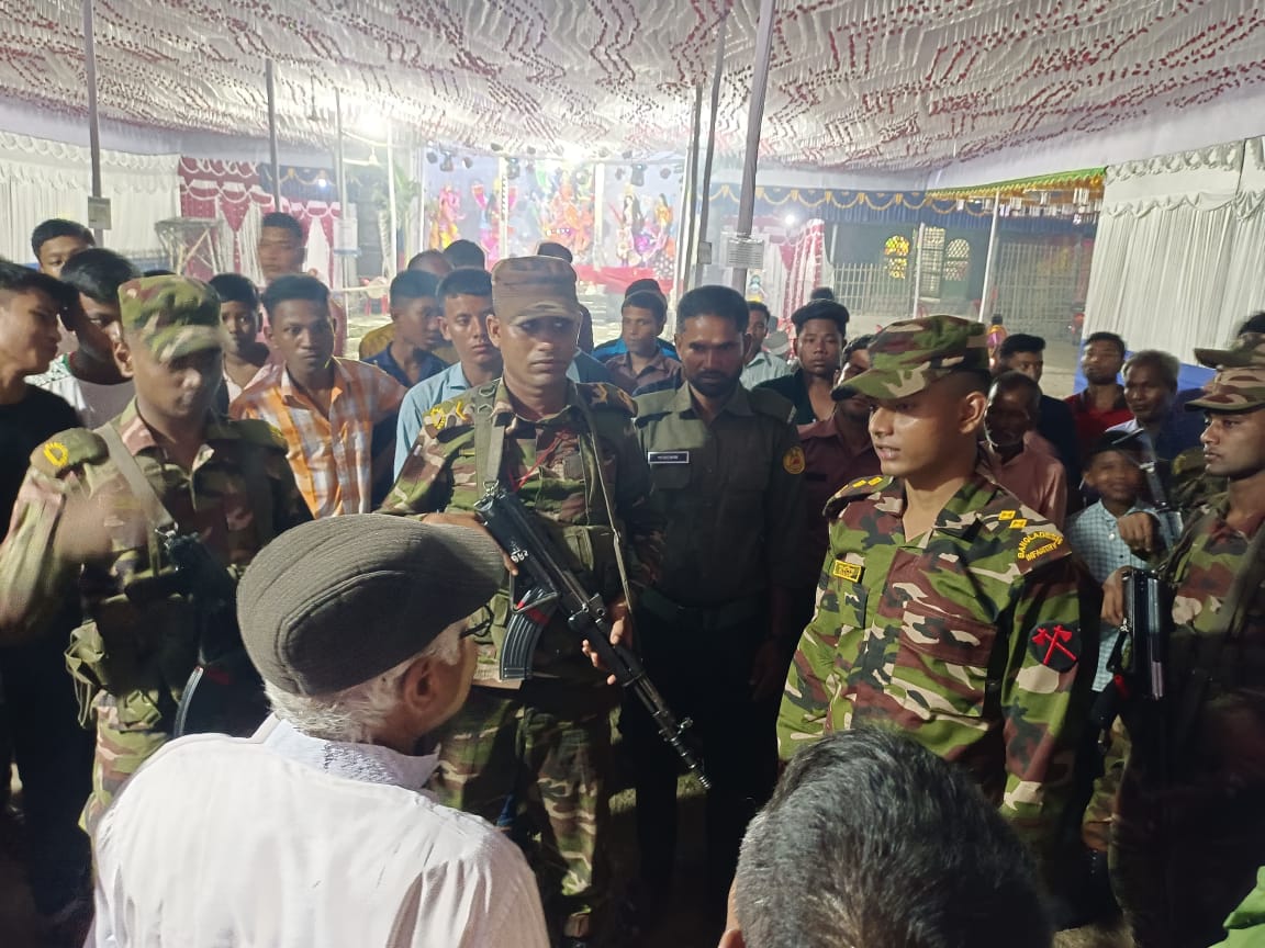 বোদায় পূজা মন্ডপ পরিদর্শনে বাংলাদেশ সেনাবাহিনী