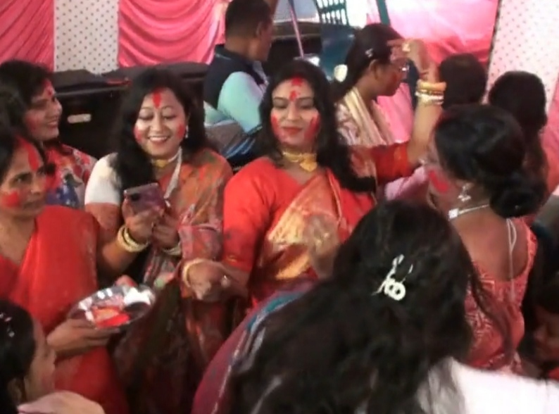 নাটোর প্রতিনিধি: বিজয়া দশমীতে আজ দেবী দুর্গা, লক্ষ্মী, সরস্বতী, কার্তিক ও গণেশকে বিসর্জন দেয়া হবে। শেষ মুহূর্তে বিষাদের মাঝেও সনাতনী নারীরা আনন্দে মেতে উঠেছেন সিঁদুর খেলায়।