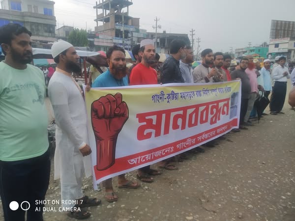 আজ শনিবার বাদ জোহর গাংনীর সর্বস্তরের জনগণের অংশগ্রহনে গাংনী বাসস্ট্যান্ড চত্বরে বিশাল মানববন্ধনের অয়োজন করা হয়।