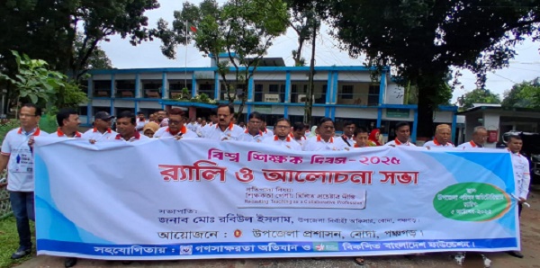 বোদা উপজেলা প্রশাসনের আয়োজনে ও গণসাক্ষরতা অভিযান এবং বিকশিত বাংলাদেশ ফাউন্ডেশনের সহযোগীতায় রোববার (৫ অক্টোবর) সকালে পরিষদ চত্বর থেকে কলেজ, মাদরাসা, প্রাথমিক বিদ্যালয় ও হাইস্কুলের শিক্ষকদের অংশগ্রহণে শোভাযাত্রা শুরু হয়ে পৌর এলাকার প্রধান সড়ক প্রদক্ষিণ শেষে উপজেলা পরিষদ মিলনায়তনে আলোচনা সভা অনুষ্ঠিত হয়।