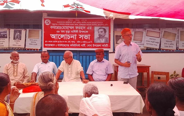 বোদা (পঞ্চগড়) প্রতিনিধি : বাংলাদেশের কমিউনিস্ট পাটির সাবেক সাধারণ সম্পাদক, পঞ্চগড়-২ আসনের সংসদ সদস্য ও মুক্তিযুদ্ধের অনতম্য সংগঠক কমরেড মোহাম্মদ ফরহাদের ৩৮তম মৃত্যুবার্ষিকী উপলক্ষে বোদায় আলোচনা সভা ও কমরেড মোহাম্মদ ফরহাদের প্রতিকৃতিত্বে ফুলের শ্রদ্ধাঞ্জলি প্রদান করা হয়। গতকাল বৃহস্পতিবার কমরেড মোহাম্মদ ফরহাদের প্রামানিকপাড়াস্থ বাসভবনে বোদা উপজেলা কমিউনিস্ট পাটি উদ্যোগে কমরেড মোহাম্মদ ফরহাদের প্রতিকৃতিতে শ্রদ্ধা নিবেদন শেষে আলোচনা সভা অনুষ্ঠিত হয়। উপজেলা কমিউনিস্ট পাটির সভাপতি দিপক কুমার দে বাবলুর সভাপতিত্বে ও উপজেলা কমিটির সাধারণ সম্পাদক কমরেড লিহাজ উদ্দীন মানিকের সঞ্চালনায় বক্তব্য রাখেন জেলা কমিউনিস্ট পার্টির সভাপতি কমরেড আশরাফুল আলম, সাধারণ সম্পাদক কমরেড আলতাফ হোসেন, বাংলাদেশ জাসদ পঞ্চগড় জেলা কমিটির সভাপতি ইমরান আল আমিন, জেলা কমিউনিস্ট পার্টির সম্পাদক মন্ডলীর সদস্য বীরমুক্তিযোদ্ধা ফিরোজা খন্দকার চামেলী, বীরমুক্তিযোদ্ধা আব্দুল হান্নান, সাবেক অধ্যক্ষ শফিকুল ইসলাম, উপজেলা কমিউনিস্ট পাটির সম্পাদকমন্ডলীর সদস্য কমরেড আলী মুতুজা প্রমুখ।