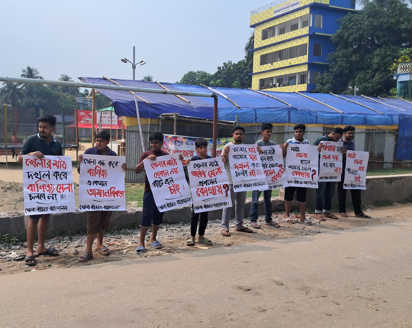এর প্রতিবাদে বৃহস্পতিবার বেলা সাড়ে ১২টার দিকে স্থানীয় তরুণদের ব্যানারে ‘খেলা বাঁচাও আন্দোলন’ নামের একটি সংগঠন মাঠে মানববন্ধন কর্মসূচি পালন করে।