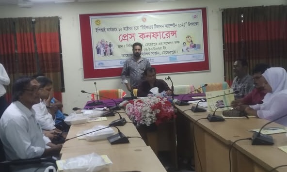 একইসময়ে প্রেস কনফারেন্সের শুরুতেই মেহেরপুরের সিভিল সার্জন ডা. আবু সাঈদ এর সভাপতিত্বে মেডিকেল অফিসার ইনজামামুল হক ভিডিও প্রজেক্টরের মাধ্যমে টাইফয়েড টিকাদান ক্যাম্পেইনের ভূমিকা , বাংলাদেশে টাইফয়েড জ্বর, টাইফয়েড জ্বর ও এর প্রভাব, টাইফয়েড জ্বর কিভাবে ছড়ায়, টাইফয়েড জীবানুর সুপ্তকাল, ঝুঁকিপূর্ণ জনগোষ্ঠী, টাইফয়েড জ্বরের লক্ষণসমূহ, টাইফয়েড টিকাদান , টিকাদান ক্যাম্পেইনের উদ্দিষ্ট জনগোষ্ঠী, কখন টিকা দেয়া যাবে না, টিকার জন্য রেজিষ্ট্রেশন করার পদ্ধতি , সর্বপরি পরিবার ও প্রতিবেশীদের টিকাদানে উদ্বুদ্ধ করা এবং সকল শিশুকে টিকাদানে আগ্রহী করার আহবান জানানো হয়।