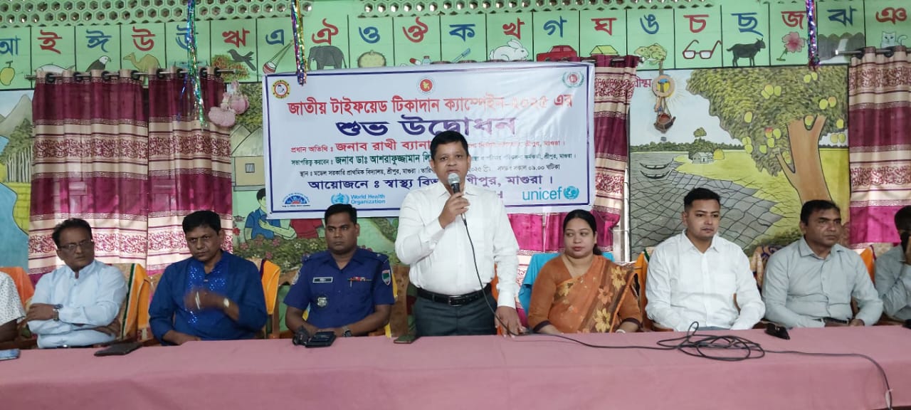 মোঃ সাইফুল্লাহ, মাগুরা সংবাদদাতা: মাগুরার শ্রীপুরে টাইফয়েড টিকাদান ক্যাম্পেইন উপলক্ষে রবিবার সকালে শ্রীপুর সরকারি মডেল প্রাথমিক বিদ্যালয়ে শ্রীপুর সেন্ট্রাল কেজি স্কুলের ছাত্র তনুষ ব্যানার্জী তুর্যকে টিকা দেওয়ার মধ্যে দিয়ে টিকা কার্যক্রমের উদ্বোধন করা হয়। তনুষ ব্যানার্জী তুর্য উপজেলা নির্বাহী কর্মকর্তা রাখী ব্যানার্জীর সন্তান। একই সাথে শ্রীপুর সরকারি মডেল প্রাথমিক বিদ্যালয়ের ৪র্থ শ্রেণির ছাত্রী উম্মে হাফসা ও উম্মে হাবিবাকে টাইফয়েড টিকা প্রদানের মধ্যে দিয়ে মাসব্যাপী টিকা ক্যাম্পেনের শুভ উদ্বোধন করেন উপজেলা নির্বাহী কর্মকর্তা রাখী ব্যানার্জী। উদ্বোধনী অনুষ্ঠানের আগে স্বাস্থ্য ও পরিবার পরিকল্পনা কর্মকর্তা ডাঃ আশরাফুজ্জামান লিটনের সভাপতিত্বে আলোচন সভা অনুষ্ঠিত হয়। সভায় প্রধান অতিথি হিসেবে উপস্থিত ছিলেন শ্রীপুর উপজেলা নির্বাহী কর্মকর্তা রাখী ব্যানার্জী। অনুষ্ঠানে বক্তব্য রাখেন থানা অফিসার ইনচার্জ মোঃ ইদ্রিস আলী,উপজেলা প্রাথমিক শিক্ষা কর্মকর্তা আব্দুর রশিদ, মাগুরা সিভিল সার্জন অফিসের মেডিকেল অফিসার ডাঃ এজাজ আহমেদ রোচি, প্রেস ক্লাব সভাপতি ড. মুসাফির নজরুলসহ অন্যরা। উপস্থিত ছিলেন উপজেলা যুবদলের আহবায়ক জিয়াউল হক ফরিদ, ছাত্রদলের (ভারপ্রাপ্ত) আহবায়ক এনায়েত হোসেন, জেলা স্যানেটারি ইন্সেপেক্টর (ভারপ্রাপ্ত) অচিন্ত্য কুমার সাহা, ইপিআই টেকনোলজিষ্ট তুষার কান্তি ঢালী, প্রেস ক্লাব সাধারণ সম্পাদক মোঃ নাসিরুল ইসলামসহ শিক্ষক, শিক্ষিকা, সাংবাদিক রাজনীতিক,স্বাস্থ্য পরিদর্শক, পরিবার পরিকল্পনা পরিদর্শক, স্বাস্থ্য সহকারী ও ছাত্র /ছাত্রীবৃন্দ। ১২ অক্টোবর থেকে উপজেলার ৮৪ টি সরকারি প্রাথমিক বিদ্যালয়, ৪৫টি মাধ্যমিক বিদ্যালয়, ১২৬টি অন্যান্য শিক্ষা প্রতিষ্ঠানে ও ১৯২ টি ইপিআই সেন্টারে ৯ মাস থেকে ১৫ বছরের কম বয়সী সকল শিশুকে টাইফয়েড টিকা দেওয়া হবে।