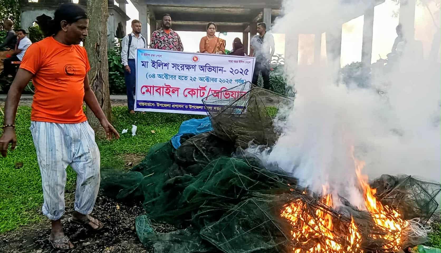 মোঃ সাইফুল্লাহ,মাগুরা সংবাদদাতা: মাগুরার শ্রীপুর উপজেলা প্রশাসন ও মৎস্য অধিদপ্তরের যৌথ উদ্যোগে মৎস্যসম্পদ উন্নয়নে আইন বাস্তবায়ন উপলক্ষে দুই লক্ষাধিক টাকার চায়না দোয়ারী ও কারেন্ট জাল জব্দ করা হয়। রবিবার দিনভর উপজেলার গড়াই নদীর গোয়ালদাহ থেকে লাঙ্গলবাঁধ পর্যন্ত অভিযান চালিয়ে জব্দকৃত বিপুল পরিমান চায়না দোয়ারী ও কারেন্ট জাল সন্ধ্যায় পুড়িয়ে ধ্বংস করা হয়।