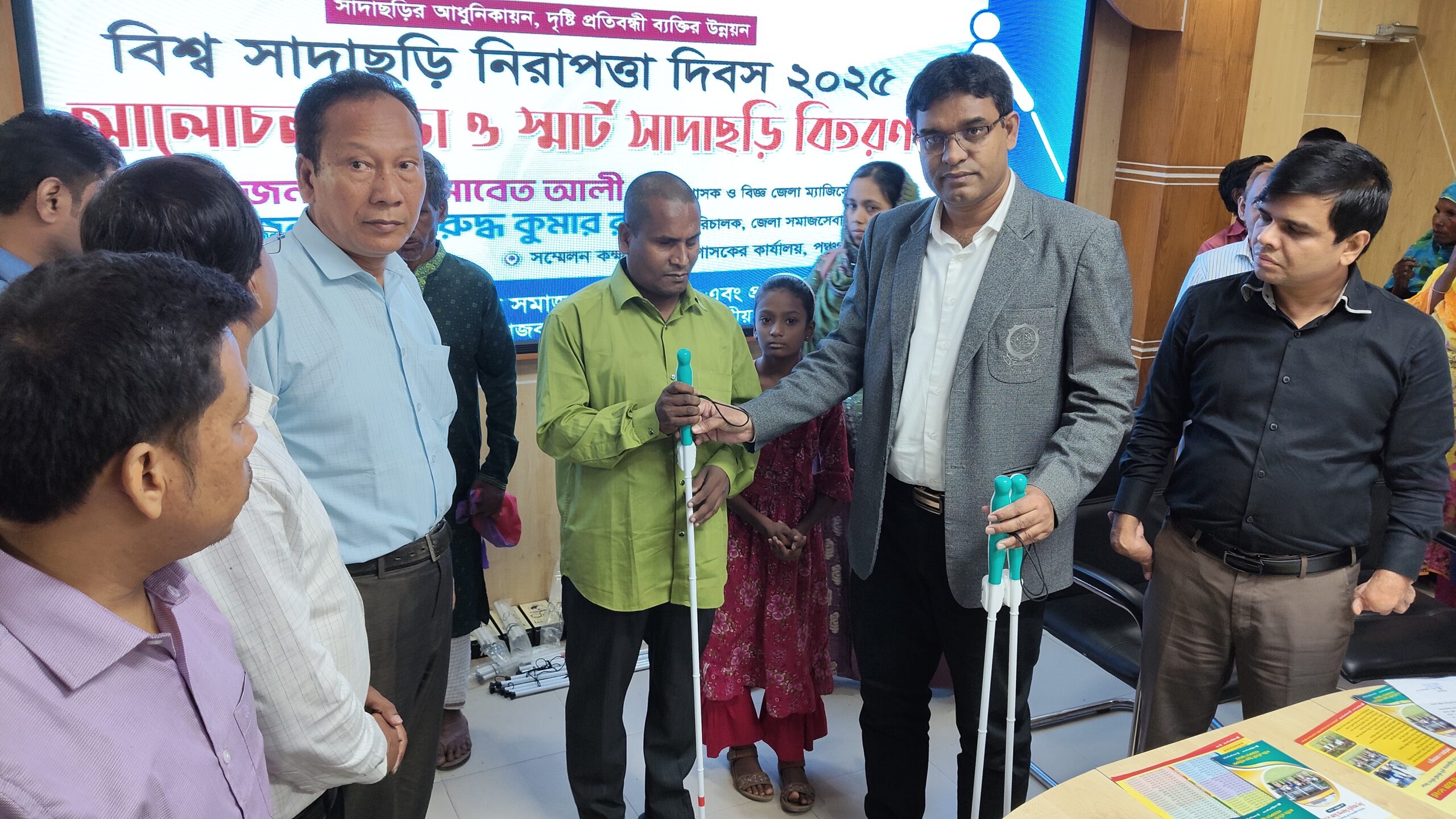 আলোচনা শেষে জেলা প্রশাসক সাবেত আলী দৃষ্টি প্রতিবন্ধী ব্যক্তিদের মাঝে ২৫টি স্মার্ট সাদাছড়ি ও একটি হুইলচেয়ার বিতরণ করেন।