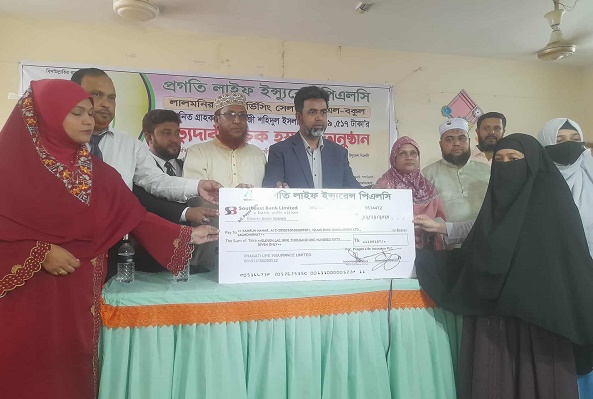 লালমনিরহাটে প্রগতি লাইফ ইন্স্যুরেন্স এর মৃত্যু দাবির চেক হস্তান্তর