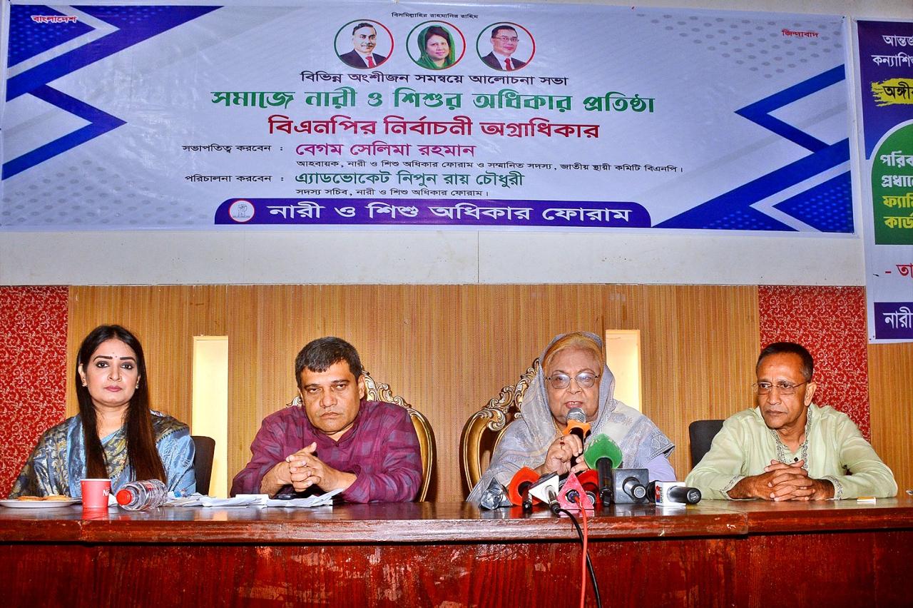 তিনি শনিবার দুপুরে চট্টগ্রাম প্রেসক্লাবের জুলাই বিপ্লব হলে নারী ও শিশু অধিকার ফোরাম কেন্দ্রীয় কমিটির উদ্যোগে “সমাজে নারী ও শিশু অধিকার প্রতিষ্ঠা বিএনপির নির্বাচনী অগ্রাধিকার” শীর্ষক এক আলোচনা সভায় সভাপতির বক্তব্যে এসব কথা বলেন।