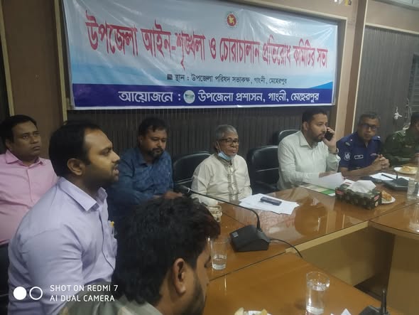 আজ বৃহস্পতিবার সকাল ১১ টার সময় গাংনী উপজেলা প্রশাসনের আয়োজনে গাংনী উপজেলা পরিষদ সম্মেলন কক্ষে সভা অনুষ্ঠিত হয়।