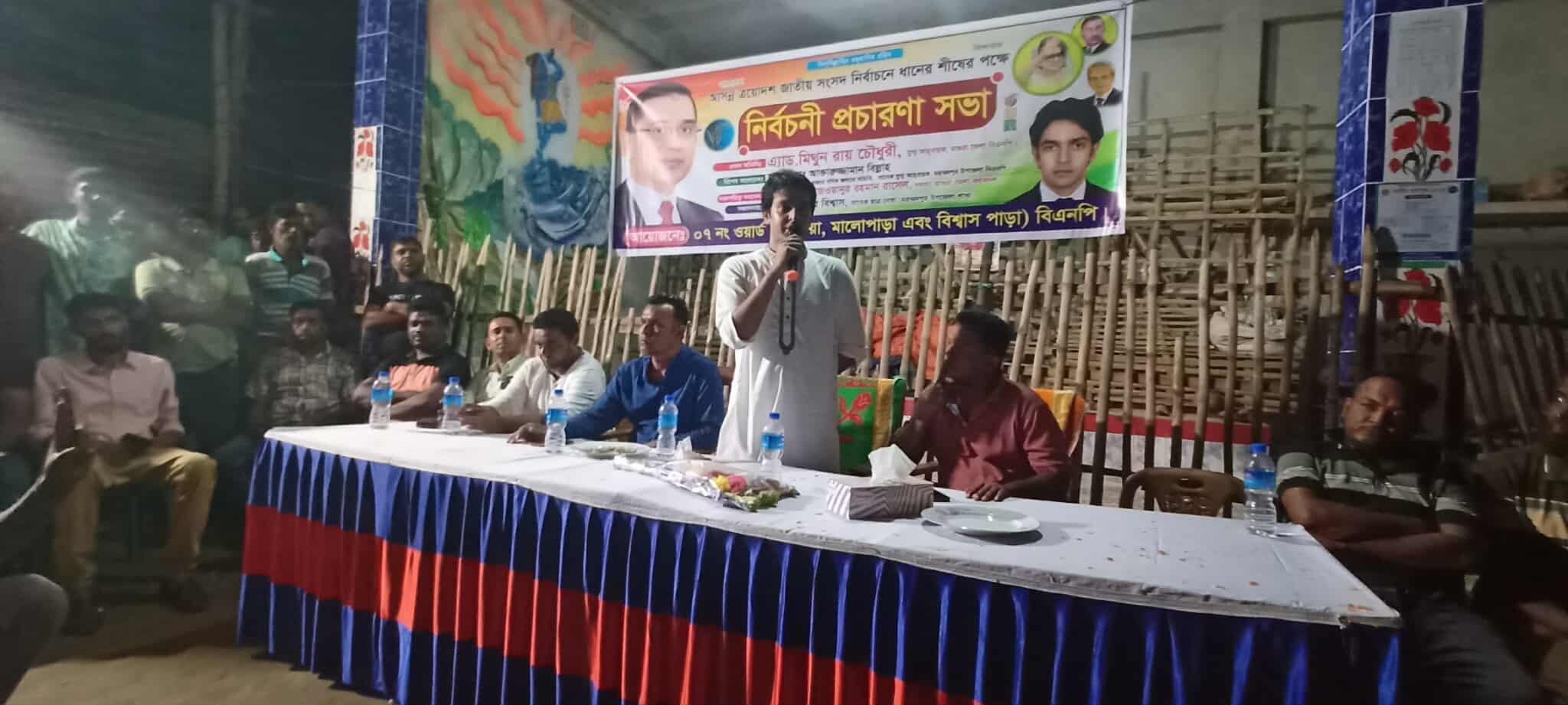 প্রধান অতিথির বক্তব্যে অ্যাডভোকেট মিথুন রায় চৌধুরী বলেন,“আমরা মহম্মদপুরের মানুষ-এই অঞ্চলকে সত্যিকার অর্থে ভালোবাসি।মহম্মদপুরে ৫০ হাজার মানুষের কর্মসংস্থান সৃষ্টি ও পৌরসভা করার উদ্যোগ রয়েছে, আমরা খুব শিগগিরই করতে চায়।এবারের ভোট ধানের শীষে হোক,উন্নয়নের পক্ষে হোক।”