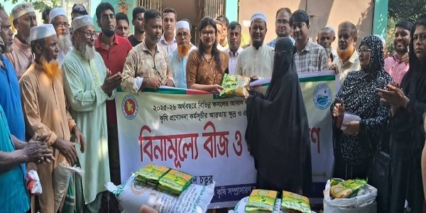 এস এ ডিউক ভূইয়া- তিতাস (কুমিল্লা) প্রতিনিধি:কুমিল্লার তিতাসে ক্ষুদ্র ও প্রান্তিক কৃষকদের মধ্যে বিনামূল্যে বীজ ও সার বিতরণ করা হয়েছে। উপজেলা কৃষি অফিসের আয়োজনে গতকাল বুধবার সকালে ২০২৫ -২৬ অর্থবছরে বিভিন্ন ফসলের আবাদ ও উৎপাদন বৃদ্ধির লক্ষ্যে কৃষি প্রণোদনা কর্মসূচির আওতায় ক্ষুদ্র ও প্রান্তিক কৃষকদের মধ্যে বিনামূল্যে সরিষা, মসুর বীজ ও সার বিতরণ করা হয়।উপজেলা কৃষি কর্মকর্তা সাখাওয়াত হোসেনের সভাপতিত্বে প্রধান অতিথি ছিলেন উপজেলা নির্বাহী কর্মকর্তা সুমাইয়া মমিন।এসময় উপস্থিত ছিলেন উপ সহকারী উদ্ভিদ সংরক্ষণ কর্মকর্তা মোহাম্মদ আতিকুর রহমান খান, উপ-সহকারী কৃষি কর্মকর্তা মো.জাহাঙ্গীর আলম, উপ সহকারী কৃষি কর্মকর্তা মো. মহিউদ্দিন প্রমুখ।