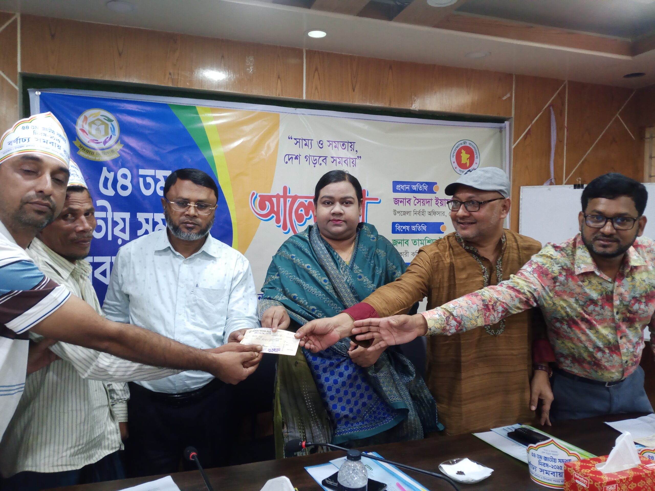 বক্তারা ‘সমবায় ভিত্তিক সমাজ গঠনের স্বপ্ন’ বাস্তবায়নের আহ্বান জানান। পরে আশ্রয়ণ ফেইজ-২ প্রকল্পে বসবাসরত ৫ জন সুবিধাভোগীদের মাঝে ঋণের চেক বিতরন করা হয়।
