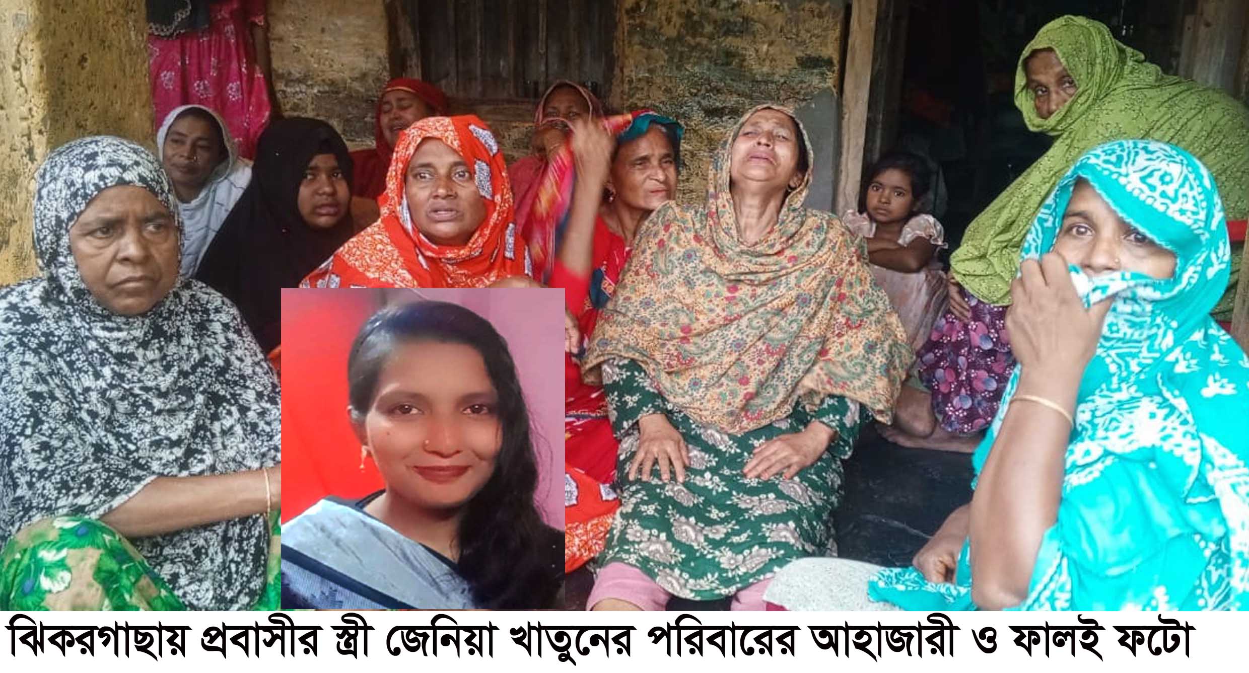 আফজাল হোসেন চাঁদ, ঝিকরগাছা : যশোরের ঝিকরগাছা উপজেলার মাগুরা ইউনিয়নের কায়েমখোলার চাঁদা গ্রামস্থ মহাসীন সরদারের বাড়ি হতে মালদ্বীপ প্রবাসীর স্ত্রী জেনিয়া খাতুন (২০) এর ঝুলান্ত লাশ উদ্ধার করেছে থানা পুলিশ। এঘাটনায় নিহতের পিতা পৌরসদরের কৃর্তিপুর মাঠপাড়া গ্রামের ছবুর গাজী (৬৫) বাদি হয়ে থানায় একটি অপমৃত্যুর মামলা দায়ের করেছেন। তবে মালদ্বীপ প্রবাসীর জেনিয়া খাতুনের পিত্রালয়ের দাবী তাকে হত্যা করা হয়েছে।