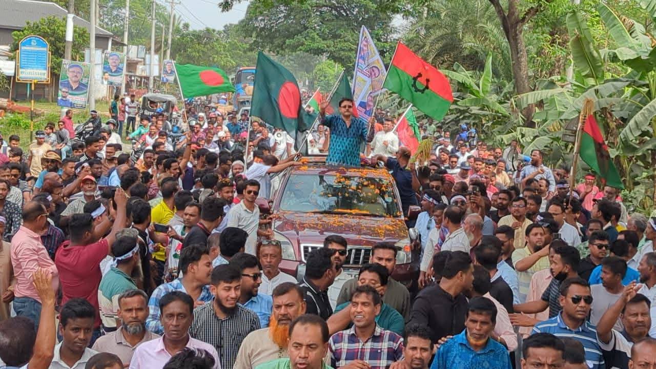 বিশ্বজিৎ সিংহ রায় মাগুরা জেলা প্রতিনিধি।। আসন্ন এয়োদশ জাতীয় সংসদ নির্বাচনকে সামনে রেখে বাংলাদেশ জাতীয়তাবাদী দল (বিএনপি) মনোনীত মাগুরা-১আসনের প্রার্থী ও জেলা বিএনপির সদস্য সচিব,আলহাজ্ব মনোয়ার হোসেন খানকে বর্ণাঢ্য সংবর্ধনা প্রদান করা হয়েছে। বুধবার (৫ নভেম্বর) সকালে তিনি,কামারখালী সেতু এলাকায় পৌঁছালে হাজার হাজার দলীয় নেতা-কর্মী ও সাধারণ মানুষের ঢল নামে।ফুলেল শুভেচ্ছা,ব্যানার,ফেস্টুন ও স্লোগানে সেতু থেকে শহর পর্যন্ত পথজুড়ে ছিল উৎসবমুখর পরিবেশ।প্রত্যক্ষদর্শীদের জানান,সকাল থেকেই কামারখালী ব্রিজ ও আশপাশের এলাকায় বিভিন্ন ইউনিয়ন ও ওয়ার্ড থেকে মিছিল নিয়ে নেতা-কর্মীরা সমবেত হন। পরে একটি বিশাল শোভাযাত্রা শহরের বিভিন্ন সড়ক প্রদক্ষিণ করে।