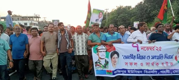 আমিরুল ইসলাম অল্ডাম মেহেরপুর প্রতিনিধি: মেহেরপুরের গাংনীতে উপজেলা বিএনপি ও পৌর বিএনপির আয়োজনে  ৭ নভেম্বর জাতীয় বিপ্লব ও সংহতি দিবস উপলক্ষ্যে  র‍্যালীও আলোচনা সভা  অনুষ্ঠিত হয়েছে।