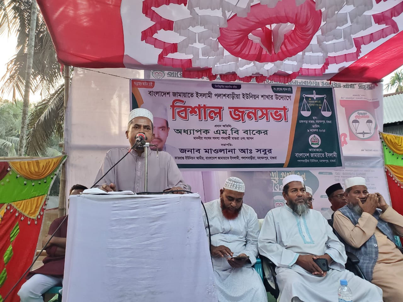 পলাশ বাড়ীয়া ইউনিয়নের ভারপ্রাপ্ত আমীর মাওলানা আব্দুস সবুরের সভাপতিত্বে জনসভায় বিশেষ অতিথি হিসেবে উপস্থিত ছিলেন জেলা জামায়াতে ইসলামীর নায়েবে আমীর অধ্যক্ষ মাওলানা মাহবুবুর রহমান, মহম্মদ পুর উপজেলা জামায়াতে ইসলামীর সাবেক আমীর ও জেলা জামায়াতে ইসলামীর কর্মপরিষদ সদস্য , মাওলানা কবির হোসাইন, এবং মহম্মদপুর উপজেলা জামায়াতে ইসলামীর ভারপ্রাপ্ত আমীর মাস্টার নজরুল ইসলাম।