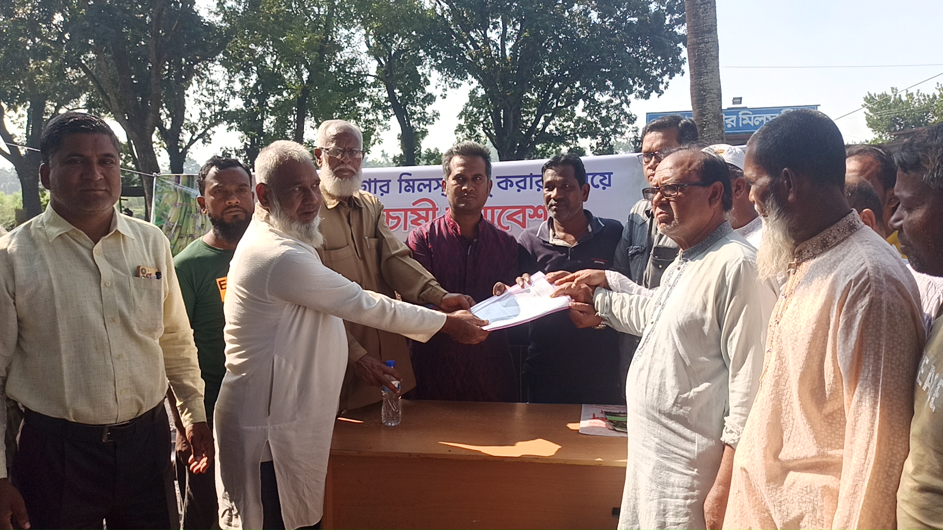 পরে সুগার মিল চালু করার বিষয়ে এনসিপি নেতা তানবিরুল বারী নয়নের হাতে একটি স্মারকলিপি তুলে দেয়া হয়।