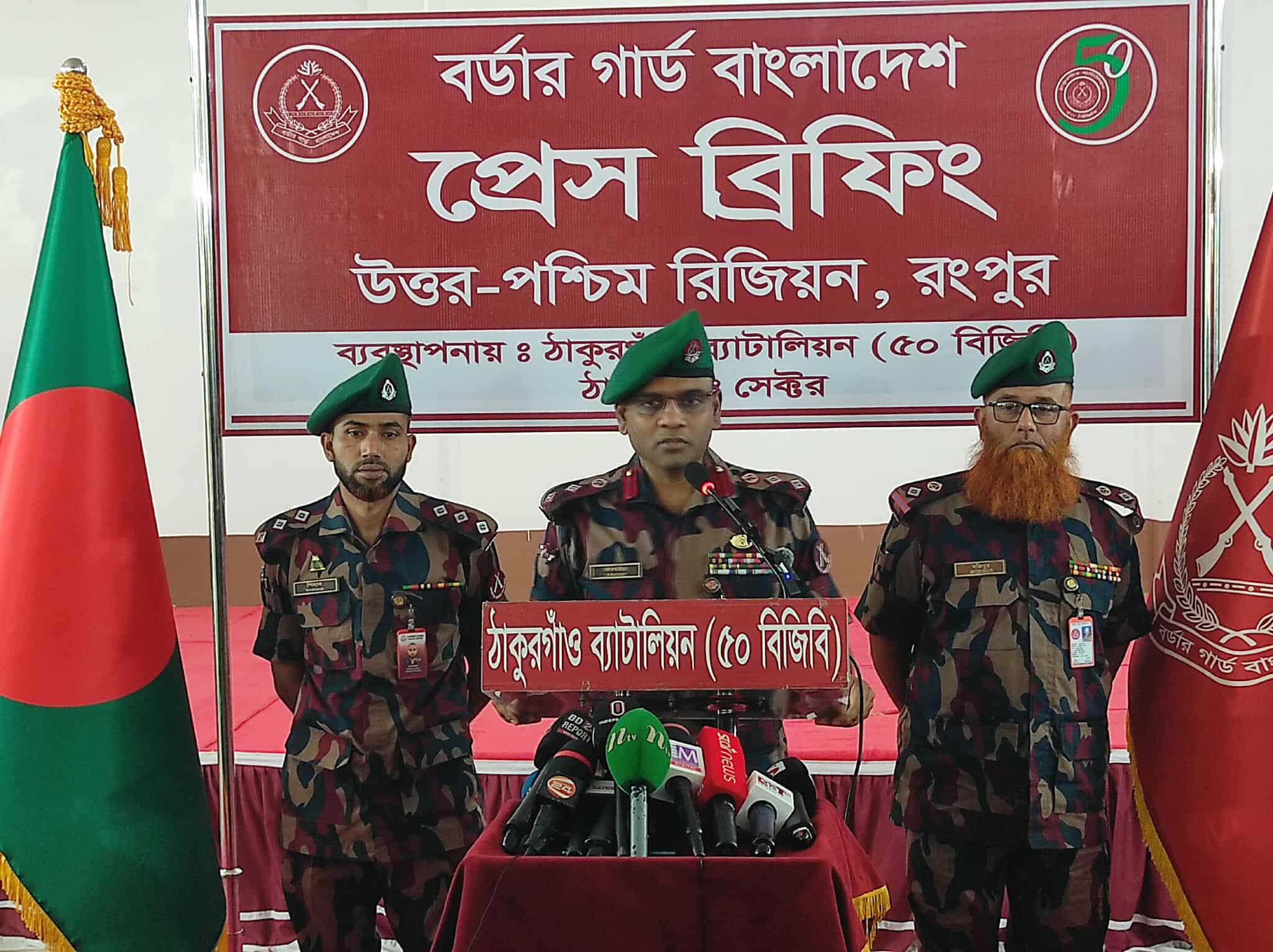 বুধবার (১২ নভেম্বর) দুপুরে ঠাকুরগাঁও ৫০ বিজিবি ব্যাটালিয়নের সদর দপ্তরে উত্তর-পশ্চিম রিজিয়ন, রংপুরের আয়োজনে অনুষ্ঠিত এক সংবাদ সম্মেলনে এ তথ্য জানান অধিনায়ক লেফটেন্যান্ট কর্নেল তানজীর আহম্মদ।