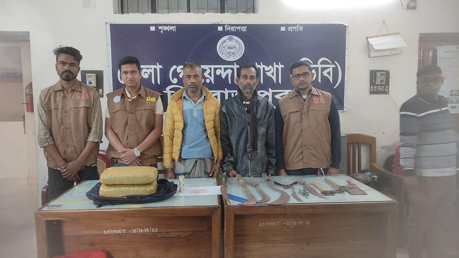 ডিবি পুলিশ জানায়, গোপন সংবাদের ভিত্তিতে এ অভিযান চালানো হয়। আটক ব্যক্তিদের কাছ থেকে ডাকাতির কাজে ব্যবহৃত ১১ ধরনের দেশীয় অস্ত্র উদ্ধার করা হয়েছে।