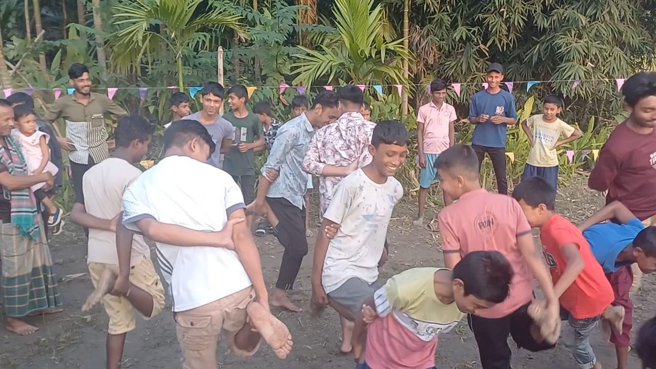 দুপুর থেকে শুরু হয়ে সন্ধ্যা পর্যন্ত চলে পাক্ষি, হাড়িভাঙা, মোড়গ লড়াই, ব্যাঙ দৌড়, বিস্কুট দৌড়, হাতি উড়ে না পাখি উড়ে, দুর্ভাগ্য বালিশ, কঙ্কর নিক্ষেপ ও ভিতরে-বাইরে খেলার প্রতিযোগিতা। কেউ খেলায় অংশ নিচ্ছে, কেউ পাশে দাঁড়িয়ে উৎসাহ দিচ্ছে, গ্রাম যেন পরিণত হয় এক উৎসবের মেলায়।