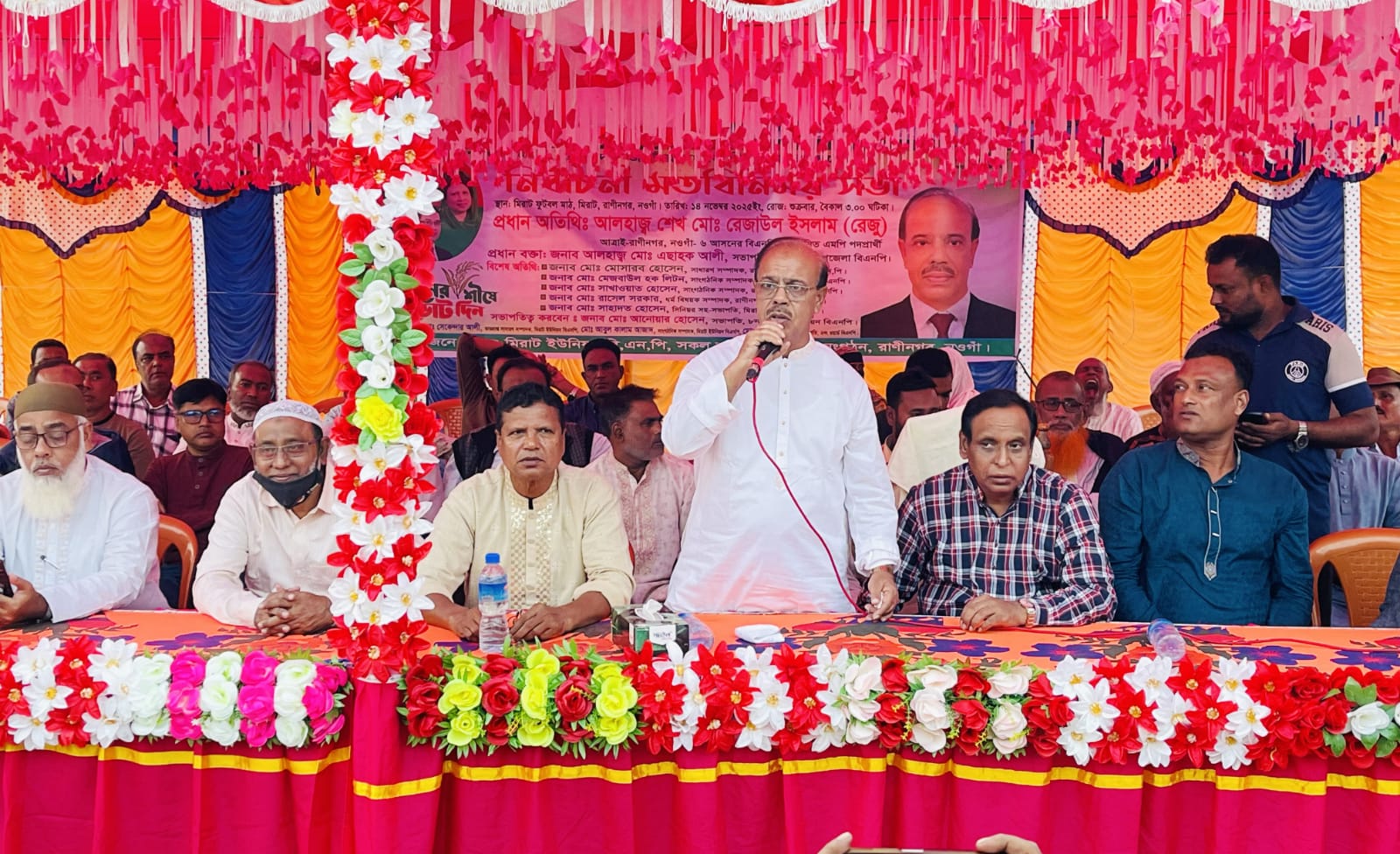 মিরাট ইউনিয়ন বিএনপির সভাপতি মো. আনোয়ার হোসেনের সভাপতিত্বে সভায় প্রধান অতিথি হিসেবে বক্তব্য রাখেন, ত্রয়োদশ জাতীয় সংসদ নির্বাচনে নওগাঁ-৬ (রাণীনগর-আত্রাই) আসনের বিএনপির মনোনীত প্রার্থী শেখ মো. রেজাউল ইলসাম রেজু।