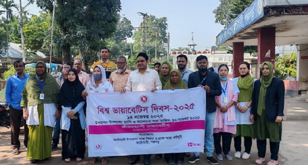 মোঃ জাহেরুল ইসলাম আটোয়ারী(পঞ্চগড়) প্রতিনিধি : পঞ্চগড়ের আটোয়ারীতে বেসরকারি উন্নয়ন সংস্থা ব্র্যাকের বিশ্ব ডায়াবেটিস দিবস-২০২৫ উদযাপন উপলক্ষে র্যালি, আলোচনা সভা ও এনসিডি ক্যাম্প অনুষ্ঠিত হয়েছে। আটোয়ারী উপজেলা স্বাস্থ্য বিভাগ ও ব্র্যাক স্বাস্থ্য কর্মসুচির আয়োজনে রবিবার ( ১৬ নভেম্বর) সকালে উপজেলা স্বাস্থ্য কমপ্লেক্স চত্বর থেকে একটি র্যালি বের হয়ে উপজেলার গুরুত্বপূর্ণ সড়ক প্রদক্ষিণ করা হয়। র্যালি শেষে উপজেলা স্বাস্থ্য কমপ্লেক্স হলরুমে বিশ্ব ডায়াবেটিস দিবসের উপর গুরুত্বারোপ করে আলোচনা সভা অনুষ্ঠিত হয়। এতে ব্র্যাক স্বাস্থ্য কর্মসূচির এলাকা ব্যবস্থাপক মোছাঃ শাহিনা ফৌজিয়া সভাপতিত্ব করেন এবং স্বাগত বক্তব্য রাখেন। সভায় উপজেলা স্বাস্থ্য ও পরিবার পরিকল্পনা অফিসার ডা. মোঃ হুমায়ুন কবীর প্রধান অতিথি হিসেবে ডায়াবেটিস সম্পর্কে গুরুত্বপূর্ণ বক্তব্য রাখেন। এছাড়াও ব্র্যাক স্বাস্থ্য কর্মসূচি সংগঠক মাহমুদ হাসান, নাজমুল হাসান ও মোঃ সজিব বাবু ডায়াবেটিস রোগ সম্পর্কে সভায় আলোচনা করেন। আলোচনা সভায় প্রধান অতিথির বক্তব্যে ডা. মোঃ হুমায়ুন কবীর বলেন, সারা বিশ্বেই ডায়াবেটিস এখন মহামারী আকার ধারণ করেছে। ডায়াবেটিস আছে এমন অর্ধেক রোগীই জানেন না যে তারা ডায়াবেটিসে আক্রান্ত। কেবলমাত্র নিয়ন্ত্রিত জীবন যাপনই ডায়াবেটিস রোগীকে সুস্থ রাখতে পারে। নিয়মিত স্বাস্থ্য পরীক্ষা, স্বাস্থ্যকর খাদ্যাভ্যাস এবং শারীরিক সক্রিয়তা বৃদ্ধির উদ্যোগ নিলে ডায়াবেটিসের ঝুঁকি উল্লেখযোগ্যভাবে কমানো সম্ভব। তিনি ডায়াবেটিস রোগীদের জন্য এক গুরুতর সতর্কবার্তা দিয়ে বলেন, ডায়াবেটিক রোগীগণ যথাসময়ে সঠিক চিকিৎসা সেবা গ্রহণ না করলে হার্ড এ্যাটাক, স্ট্রোক, কিডনি জটিলতা, অন্ধত্ব, মাড়ির রোগ এবং অঙ্গ বিচ্ছেদের মতো মারাত্বক শারীরিক জটিলতা হতে পারে। তিনি আরো বলেন, অতিরিক্ত ফাস্টফুড ও চর্বিযুক্ত খাবার, শারীরিক পরিশ্রম না করা এবং নিয়মিত শরীরচর্চা না করার ফলে স্বাভাবিকের চাইতে মাত্রাতিরিক্ত ওজন বাড়ার মাধ্যমে ডায়াবেটিসের ঝুঁকি বেড়ে যায়। সেজন্য নিয়মিত ব্যায়াম, সুষম খাদ্য, চিকিৎসকের পরামর্শ অনুযায়ী ওষুধ ও সুশৃঙ্খল জীবনযাপন করা প্রয়োজন। আলোচনা শেষে উপজেলার মির্জাপুর ইউনিয়নের কালিকাপুর এলাকায় এনসিডি ক্যাম্প অনুষ্ঠিত হয়। এ ক্যাম্পের মাধ্যমে প্রত্যন্ত এলাকার মানুষদের মাঝে ডায়াবেটিস পরীক্ষা, রক্তচাপ, ওজন ও উচ্চতা মাপা এবং চক্ষু পরীক্ষা করা হয়।