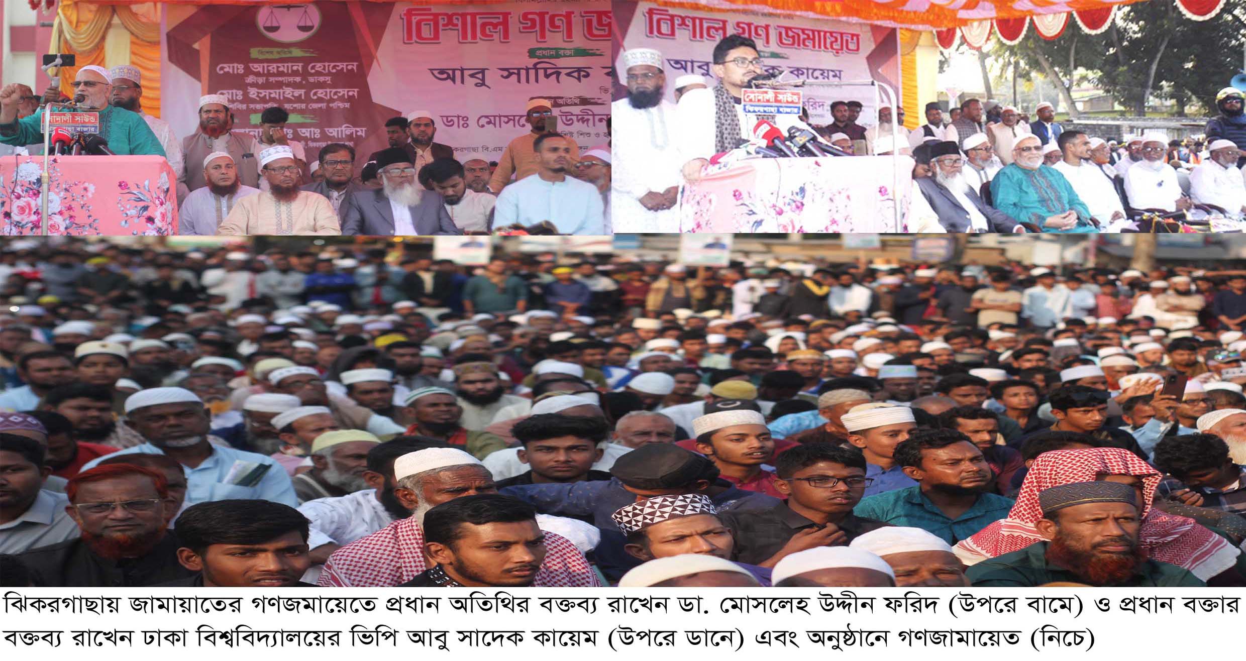 শুক্রবার (২১ নভেম্বর) বিকাল ৩ টায় পৌর সদরের স্থানীয় বি.এম হাইস্কুল মাঠ প্রাঙ্গনে এই গণ জমায়েতের উপজেলা জামায়াতের আমীর মাওলানা আব্দুল আলিমের সভাপতিত্বে অনুষ্ঠানে প্রধান বক্তা ছিলেন ঢাকা বিশ্ববিদ্যালয়ের ভিপি আবু সাদেক কায়েম। তিনি তার বক্তব্যে বলেন, ন্যায় ও ইনসাফের রাষ্ট্র প্রতিষ্ঠার জন্য জুলাইয়ের ন্যায় জীবন দিতে হলে দিবো। নির্বাচনের দিন আমাদের কেন্দ্র পাহারা দিতে হবে যাতে করে ফ্যাসিস্ট এর দোসররা আর নেতৃত্বে না আসে। খুব দ্রুত সময়ের মধ্যে ফ্যাসিস্ট হাসিনার ফাঁসির রায় কার্যকর করতে হবে।