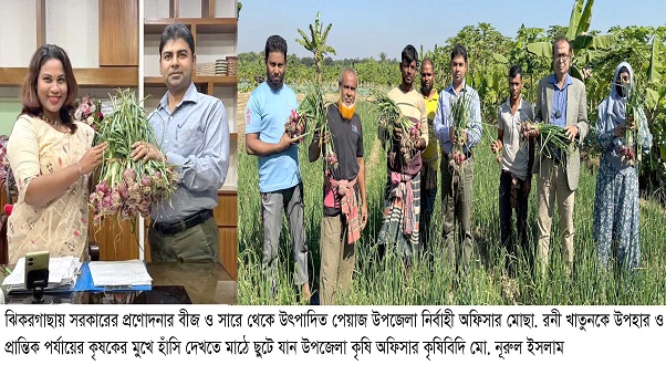 আফজাল হোসেন চাঁদ, ঝিকরগাছা : যশোরের ঝিকরগাছায় সরকারের কৃষি প্রণোদনার বীজ ও সারে প্রান্তিক পর্যায়ে কৃষকের মুখে হাঁসি ফুটে উঠতে দেখা গেছে। উপজেলা কৃষি সম্প্রসারণ অধিদপ্তর থেকে ২০২৪-২৫ অর্থ বছরে কৃষি পূনর্বাসন সহায়তা খাত হতে খরিপ-১/ ২০২৪-২৫ মৌসুমে গ্রীষ্মকালীন আবাদের প্রণোদনা কর্মসূচির’র আওতায় ৩শত ১০জন কৃষকের মাঝে গ্রীষ্মকালীন পেঁয়াজ বীজ ও সার বিতরণ করা হয়। মাথা প্রতি কৃষক ১কেজি করে নাসিক ঘ-৭৩ জাতের বীজ, ২০কেজি করে ডিএপি, ২০কেজি করে এমওপি এবং বালাইনাশক বাবাদ নগদ ৩৫৫টাকা হারে প্রদান করা হয়। বর্তমানে এই চাষাবাদে কৃষক গ্রীষ্মকালীন পেঁয়াজ আবাদে লাভের মুখ দেখা শুরু করেছেন। উপজেলার গদখালী ইউনিয়নের বারবাকপুর গ্রামের তরিকুল ইসলাম, ঝিকরগাছা সদর ইউনিয়নের মিশ্রিদেয়াড়া গ্রামের তোফাজ্জজেল হোসেন, লাউজানী গ্রামের নাসির উদ্দিন ও নাভারণ ইউনিয়নের আমিনী গ্রামের মনিরুজ্জামান’র তথ্য মতে তাদের বিঘা প্রতি ৩৮হাজার ৫০০ থেকে ৪২হাজার ৫০০ টাকা ব্যায় করে ১৪-১৬মে.টন/হেক্টর পেঁয়াজ উৎপাদন হয়েছে। যার আনুমানিক বাজার মূল্য দেড় থেকে দুই লক্ষ টাকার মত। উপজেলায় আশানুপাতিক হারের অধিক পেয়াজ উৎপাদনে উপজেলা কৃষি অফিসার খুশি হয়ে উপজেলা নির্বাহী অফিসারকে একগুচ্ছ পেয়াজের শুভেচ্ছা জানিয়েছেন।