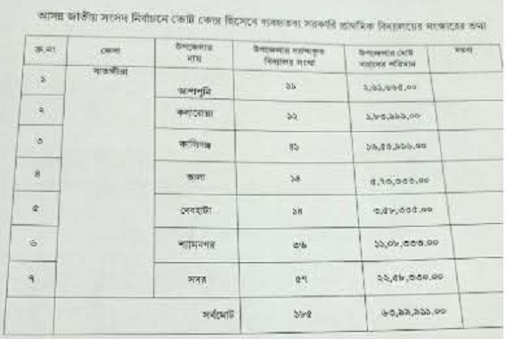 আব্দুর রহমান: আসন্ন জাতীয় সংসদ নির্বাচনকে সামনে রেখে ভোটকেন্দ্র হিসেবে ব্যবহৃত হবে সাতক্ষীরা জেলার ১৮৫টি সরকারি প্রাথমিক বিদ্যালয়। এসব বিদ্যালয়ের জরুরি মেরামত ও সংস্কারের জন্য প্রাথমিক শিক্ষা অধিদপ্তর থেকে বরাদ্দ দেওয়া হয়েছে ৬৩ লাখ ৯৯ হাজার ৯১১ টাকা। চলতি সপ্তাহে প্রাথমিক ও গণশিক্ষা মন্ত্রণালয় থেকে জারি করা এক স্মারকে এই বরাদ্দের বিষয়টি জানানো হয়েছে। এতে উপজেলা পর্যায়ের প্রাথমিক শিক্ষা কর্মকর্তাদের এই অর্থ উত্তোলন ও ব্যয়ের ক্ষমতা প্রদান করা হয়েছে। স্মারকে বলা হয়, ২০২৫-২৬ অর্থবছরের পরিচালন বাজেটের ‘অন্যান্য ভবন ও স্থাপনা’ খাতের আওতায় সারাদেশে ১২ হাজার ৫৩১টি সরকারি প্রাথমিক বিদ্যালয়ের সংস্কারের জন্য মোট ৪১ কোটি ১২ লাখ টাকা বরাদ্দ দেওয়া হয়েছে। এ অর্থ এসেছে একই খাতের মোট ৮০ কোটি টাকার বরাদ্দ থেকে। স্মারকে অর্থ ব্যয়ের ক্ষেত্রে বেশ কয়েকটি কঠোর শর্ত আরোপ করা হয়েছে। এর মধ্যে রয়েছে- সরকারের সব আর্থিক বিধি-বিধান অনুসরণ করতে হবে। ভ্যাট পরিশোধের প্রমাণপত্র সংরক্ষণ বাধ্যতামূলক। অডিটের জন্য সব বিল-ভাউচার সংরক্ষণ করতে হবে। নির্ধারিত সময়ের মধ্যে মানসম্মতভাবে কাজ সম্পন্ন করতে হবে। কাজ সম্পন্নে ব্যর্থ হলে উপজেলা প্রাথমিক শিক্ষা কর্মকর্তা, বিদ্যালয়ের প্রধান শিক্ষক ও স্কুল ম্যানেজমেন্ট কমিটির সদস্যদের দায়ী করা হবে। অব্যয়িত অর্থ ৩০ জুন ২০২৬-এর মধ্যে সরকারি কোষাগারে জমা দিতে হবে। সংস্কারকাজ তদারকি করবেন বিভাগীয় উপপরিচালক (প্রাথমিক শিক্ষা), জেলা প্রাথমিক শিক্ষা অফিসার, উপজেলা নির্বাহী কর্মকর্তা (ইউএনও) এবং উপজেলা প্রকৌশলী (এলজিইডি)। মন্ত্রণালয় জানায়, নির্বাচনের আগেই ভোটকেন্দ্রগুলোর সংস্কার কাজ মানসম্মতভাবে শেষ করার জন্য মাঠপর্যায়ে নির্দেশনা পাঠানো হয়েছে।
