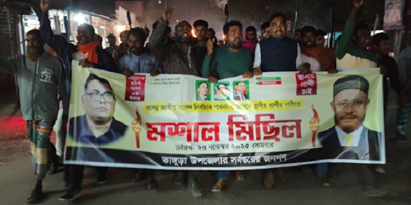 বিএনপির প্রার্থী পরিবর্তনের দাবিতে ভাঙ্গুড়ায় মশাল মিছিল