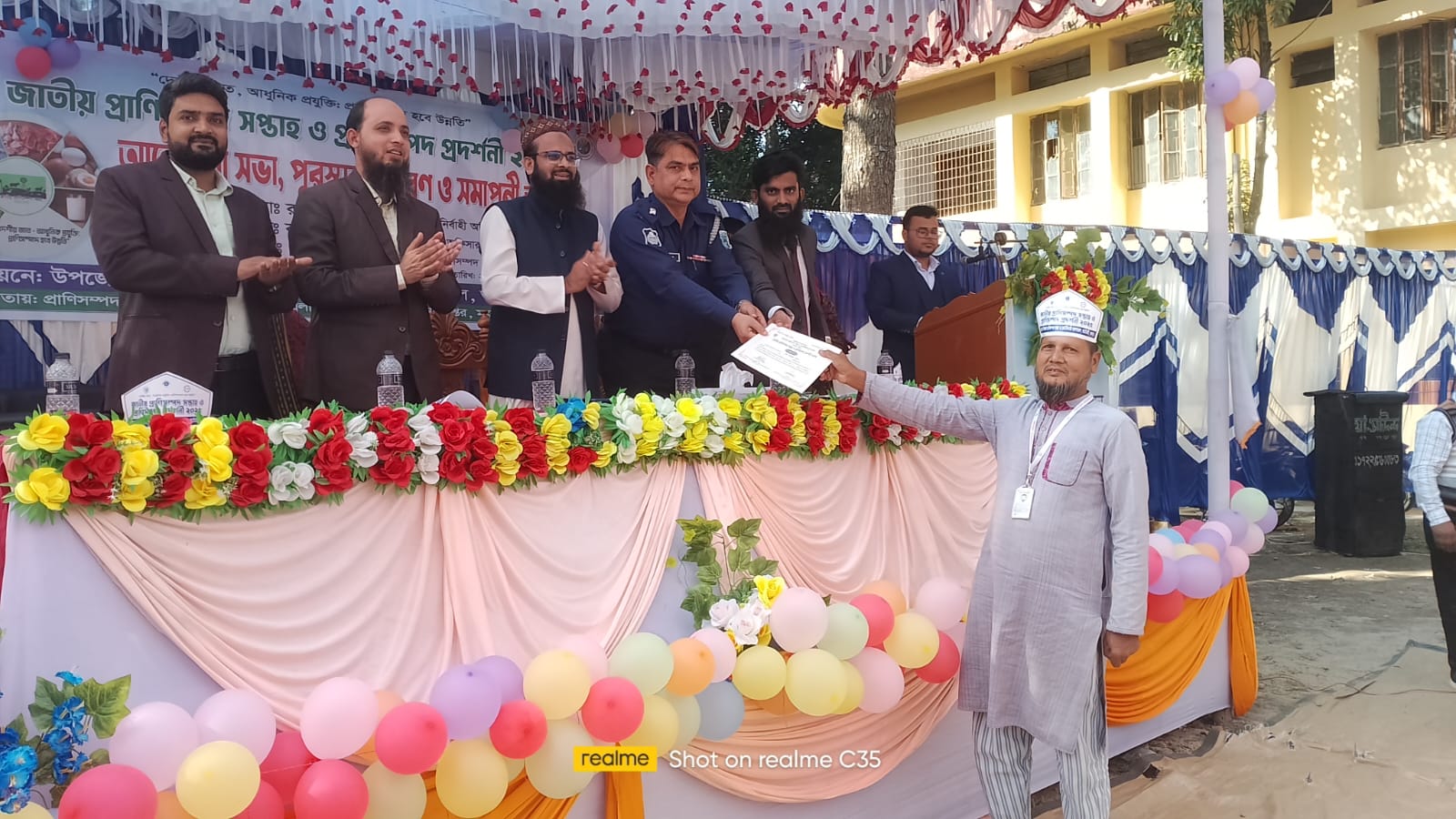 মোঃ জাহেরুল ইসলাম আটোয়ারী(পঞ্চগড়) প্রতিনিধি : “ দেশীয় জাত, আধুনিক প্রযুক্তি: প্রাণিসম্পদে হবে উন্নতি ” প্রতিপাদ্য বিষয় নিয়ে পঞ্চগড়ের আটোয়ারীতে উপজেলা প্রাণিসম্পদ দপ্তর ও ভেটেরিনারি হাসপাতালের বাস্তবায়নে এবং প্রাণিসম্পদ ও ডেইরী উন্নয়ন প্রকল্প (এলডিডিপি) প্রাণিসম্পদ অধিদপ্তর মৎস্য ও প্রাণিসম্পদ মন্ত্রণালয়ের সহযোগিতায় প্রাণিসম্পদ প্রদর্শনী অনুষ্ঠিত হয়েছে। বুধবার (২৬ নভেম্বর) উপজেলা প্রাণিসম্পদ দপ্তর ও ভেটেরিনারি হাসাপাতাল চত্বরে প্রাণিসম্পদ প্রদর্শনী ,আলোচনা সভা ও পুরস্কার বিতরণ অনুষ্ঠিত হয়। প্রদর্শনীতে ৫০টি স্টলে উপজেলার বিভিন্ন এলাকা হতে বিভিন্ন জাতের গরু, বাছুর,ছাগল,ভেড়া, ঘোড়া,হাঁস,মুরগী. কবুতর, কোয়েল পাখি প্রদর্শীত হয়। এ উপলক্ষে প্রদর্শনী প্রাঙ্গণে আলোচনা সভা অনুষ্ঠিত হয়। এতে সভাপতিত্ব করেন এবং স্বাগত বক্তব্য রাখেন উপজেলা প্রাণিসম্পদ কর্মকর্তা (ভারপ্রাপ্ত) ডা. মোঃ আব্দুল্লাহ । উপজেলা প্রাণি সম্পদ দপ্তরের অফিস সহকারী আবু রুশ মোঃ রোকন উদদ্দৌলা’র সঞ্চালনায় খামারীদের উদ্দেশ্যে গুরুত্বপূর্ণ বক্তব্য রাখেন অনুষ্ঠানের প্রধান অতিথি সহকারী কমিশনার (ভূমি) (অ.দা.) মোঃ আশরাফুল ইসলাম। বিশেষ অতিথির বক্তব্য রাখেন, অতিরিক্ত কৃষি অফিসার মোঃ আবুল কালাম আজাদ, আটোয়ারী থানার অফিসার ইনচার্জ মোঃ রফিকুল ইসলাম সরকার (জুয়েল), উপজেলা প্রকৌশলী মোঃ ফয়সাল, উপজেলা যুব উন্নয়ন কর্মকর্তা মোঃ মনিরুজ্জামান, আইসিটি অফিসার এ.এম আরিফুল ইসলাম, সফল খামারী সাবিনা ইয়াসমিন, মোঃ তাহেরুল ইসলাম প্রমুখ। প্রদর্শনীতে অংশগ্রহণকারী খামারীদের মধ্যে বিভিন্ন ক্যাটাগরিতে শ্রেষ্ঠত্ব অর্জনকারী খামারীদেরকে সনদপত্র সহ পুরস্কার প্রদান করা হয়। এ সময় বিভিন্ন দপ্তরের কর্মকর্তা-কর্মচারী,বিভিন্ন ক্যাটাগরির খামারী, গণমাধ্যমকর্মীসহ অনেক দর্শনার্থী উপস্থিত ছিলেন।