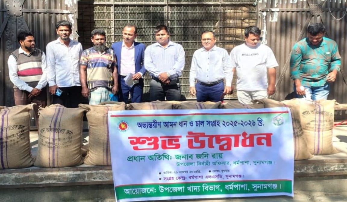 ধর্মপাশা উপজেলা খাদ্য বিভাগ এর আয়োজন করে। মঙ্গলবার সকাল ১১টায় প্রধান অতিথি হিসেবে উপস্থিত সংগ্রহ কার্যক্রমের শুভ উদ্বোধন করেন উপজেলা নির্বাহী কর্মকর্তা ইউনোও জনি রায়। এ সময় অন্যান্যের মাঝে উপস্থিত ছিলেন উপজেলা খাদ্য নিয়ন্ত্রক শফিকুল ইসলাম, সংশ্লিষ্ট খাদ্যগুদামের ভারপ্রাপ্ত কর্মকর্তা গোলাম মোর্শেদ রাসেল, উপ-খাদ্য পরিদর্শক কামরুল ইসলাম, উপজেলা যুবদলের সদস্য কবির আহমেদ, উপজেলা ছাত্রদলের সদস্য সচিব সারোয়ার হোসেন, মিলার আব্দুল কুদ্দুস প্রমুখ। প্রথম দিনে একজন কৃষকের তিন টন ধান সংগ্রহ করা হয়।