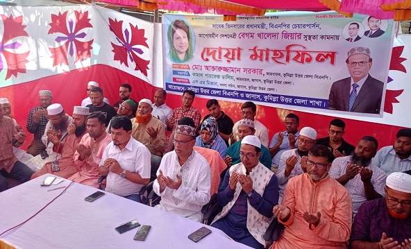 কামনায় মিলাদ ও দোয়া মাহফিল অনুষ্ঠিত হয়েছে।কুমিল্লা উত্তর জেলা বিএনপি ও জাসাসের যৌথ আয়োজনে গতকাল শুক্রবার সকাল ১১টার দিকে কুমিল্লা উত্তর জেলা বিএনপির আহবায়ক আক্তারুজ্জামান সরকারের বাতাকান্দি বাজারস্থ কার্যালয়ে বিএনপির চেয়ারপার্সন ও