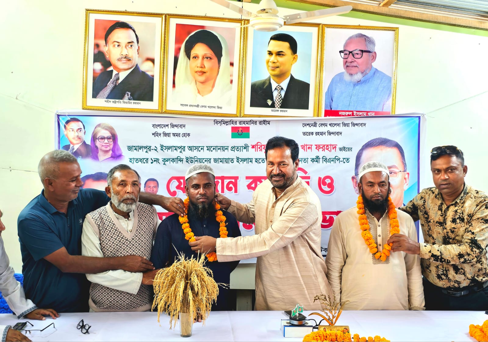শনিবার (২৯নভেম্বর) দুপুরে উপজেলা কুলকান্দি খানবাড়ী দলীয় কার্যালয়ে ইসলামপুর আসনের বিএনপির মনোনীত প্রার্থী শরিফুল ইসলাম খান ফরহাদ যোগদান অনুষ্ঠানে তার হাতে ফুল দিয়ে জামায়াতের নেতাকর্মী বিএনপিতে যোগদান করেন। তাদেরকে ফুলের মালা পরিয়ে বরণ করে নেন।