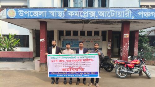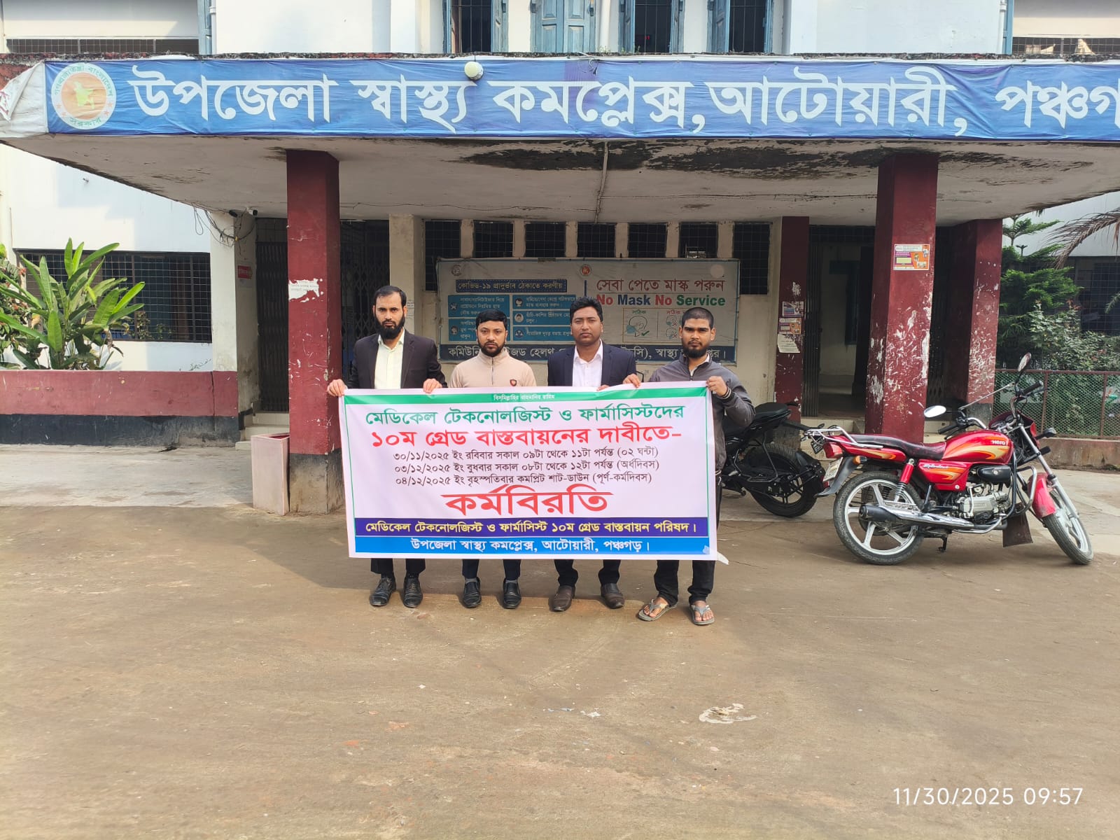 ১০ম গ্রেড বাস্তবায়নের দাবীতে আটোয়ারীতে মেডিকেল টেকনোলজিস্ট ও ফার্মাসিস্টদের ২ঘন্টা কর্মবিরতি