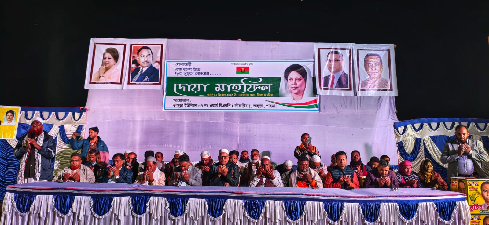 সোমবার বাদ মাগরিব ভাঙ্গুড়া ইউনিয়ন বিএনপির ৭নং ওয়ার্ড উদ্যোগে নৌউবাড়িয়া সরকারি প্রাথমিক বিদ্যালয় মাঠে এ দোয়া মাহফিল অনুষ্ঠিত হয়।