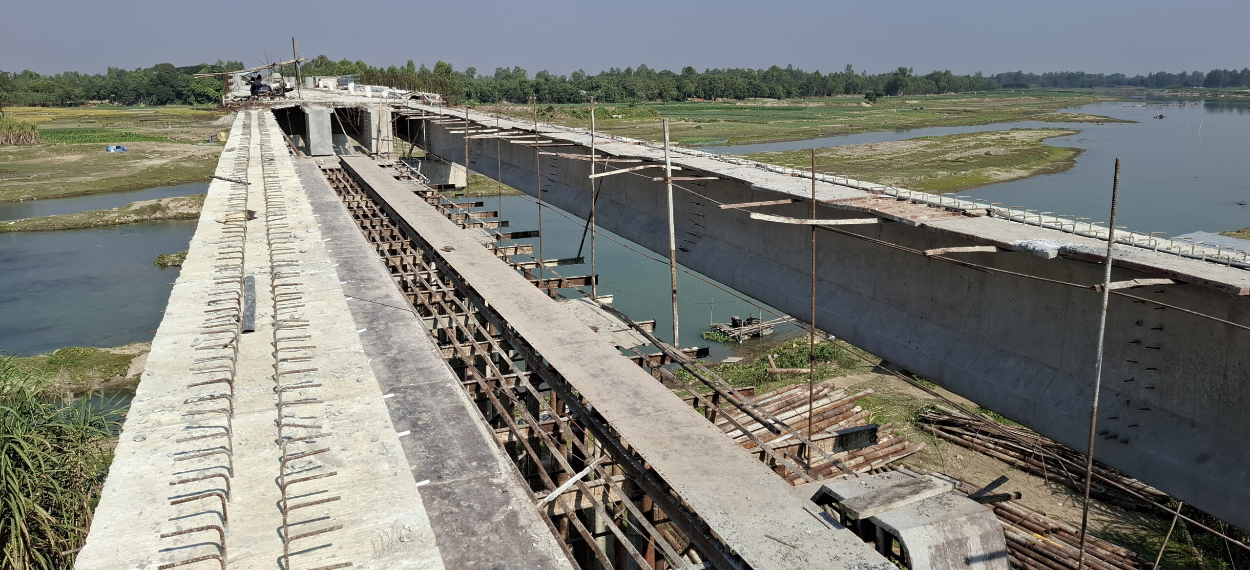 সরেজমিন সেতু এলাকায় দেখা যায় সেতুর মাত্র ৬০/৬৫ শতাংশ কাজ শেষ হয়েছে। সংযোগ সড়কের কাজ এখনও শুরুই করতে পারেনি ঠিকারাদারী প্রতিষ্ঠান। মাত্র কয়েকজন শ্রমিক দিয়ে চলছে সেতুর বাকি থাকা গার্ডার সাটারিংয়ের কাজ।