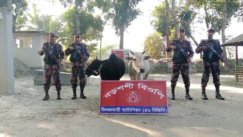 এর আগে সোমবার ৬টায় নীলফামারী ব্যাটালিয়ন (৫৬ বিজিবি)’র আওতাধীন পঞ্চগড়ের বোদা উপজেলার বড়শশী ইউনিয়নের অমরখানা এলাকায় সীমান্ত পিলার ৭৭৯/এসএ থেকে প্রায় দেড়শ গজ বাংলাদেশের অভ্যন্তরে অভিযান চালিয়ে গরুগুলো আটক করে বিজিবি৷