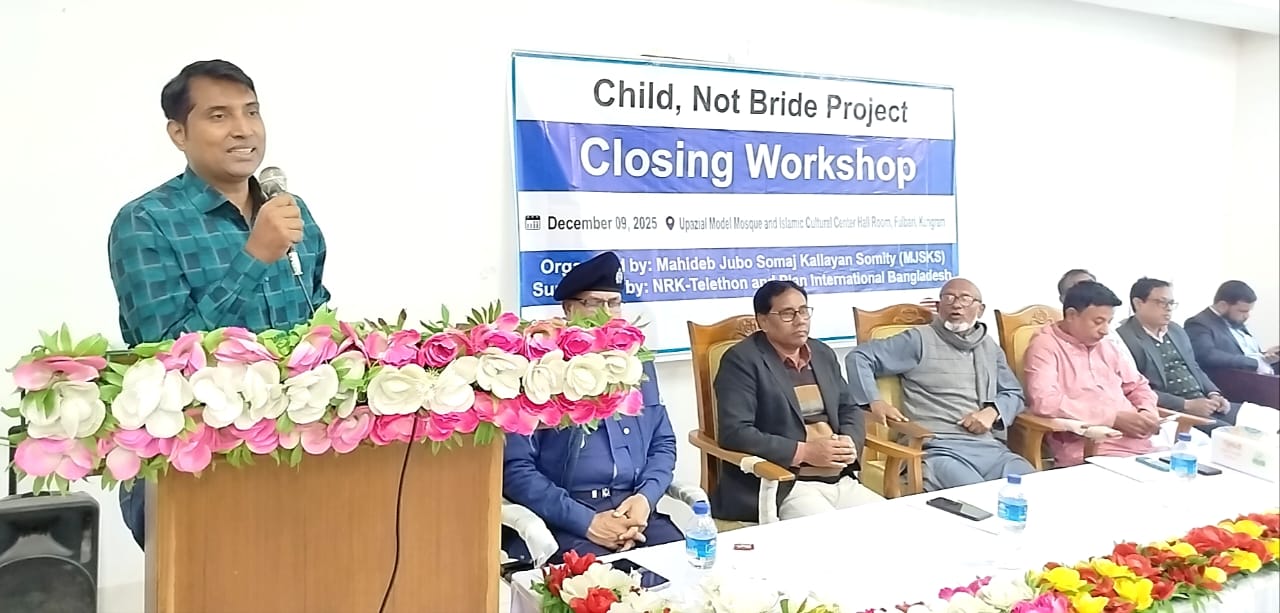 মঙ্গলবার ৯ ডিসেম্বর দুপুরের উপজেলা মডেল মসজিদ হলরুমে মহিদেব যুব সমাজ কল্যাণ সমিতিএ সময় বক্তারা জানান (এমজেএসকেএস) চাইল্ড, নট ব্রাইড (সিএনবি) প্রজেক্টের আয়োজনে এনআরকে টেলিথন ও প্লান ইন্টারন্যাশনাল বাংলাদেশ-এর কারিগরি অর্থায়নে